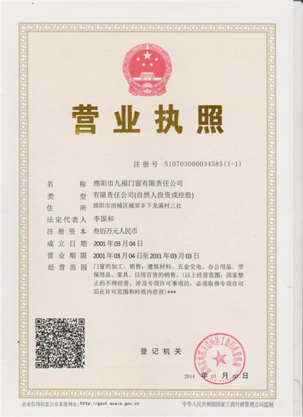 綿陽市九福門窗有限責(zé)任公司座落于中國西部美麗的科技城----綿陽。是川內(nèi)研發(fā)生產(chǎn)新型換代,生態(tài)環(huán)保室內(nèi)門和家具的企業(yè)之一。我公司生產(chǎn)的產(chǎn)品,綠色環(huán)保、堅固耐磨,抗擊性高、防潮阻燃、不含苯、不變形,連續(xù)六年經(jīng)四川省綿陽市質(zhì)量技術(shù)監(jiān)督局抽檢合格,符合中華人民共和國行業(yè)標(biāo)準(zhǔn)的各項要求。2011年,被中國產(chǎn)品培育委員會和中國品牌調(diào)查統(tǒng)計中心推介為《質(zhì)量·服務(wù)·信譽AAA企業(yè)》、《中國綠色環(huán)保產(chǎn)品》和《誠信經(jīng)營、消費者滿意產(chǎn)品》;注冊商標(biāo)“金九福”牌系列產(chǎn)品,在全國品牌評選推廣活動中,經(jīng)中國品牌認證委員會和中國產(chǎn)品質(zhì)量評選中心審核,于2012年2月入選為《中國****品牌》…>>更多 |